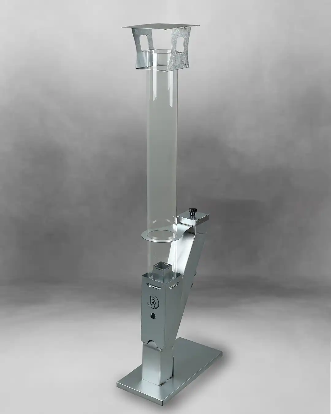 Uzun füze tipi ısıya dayanıklı camıyla alev görünümü dekoratif bir atmosfer oluşturur.