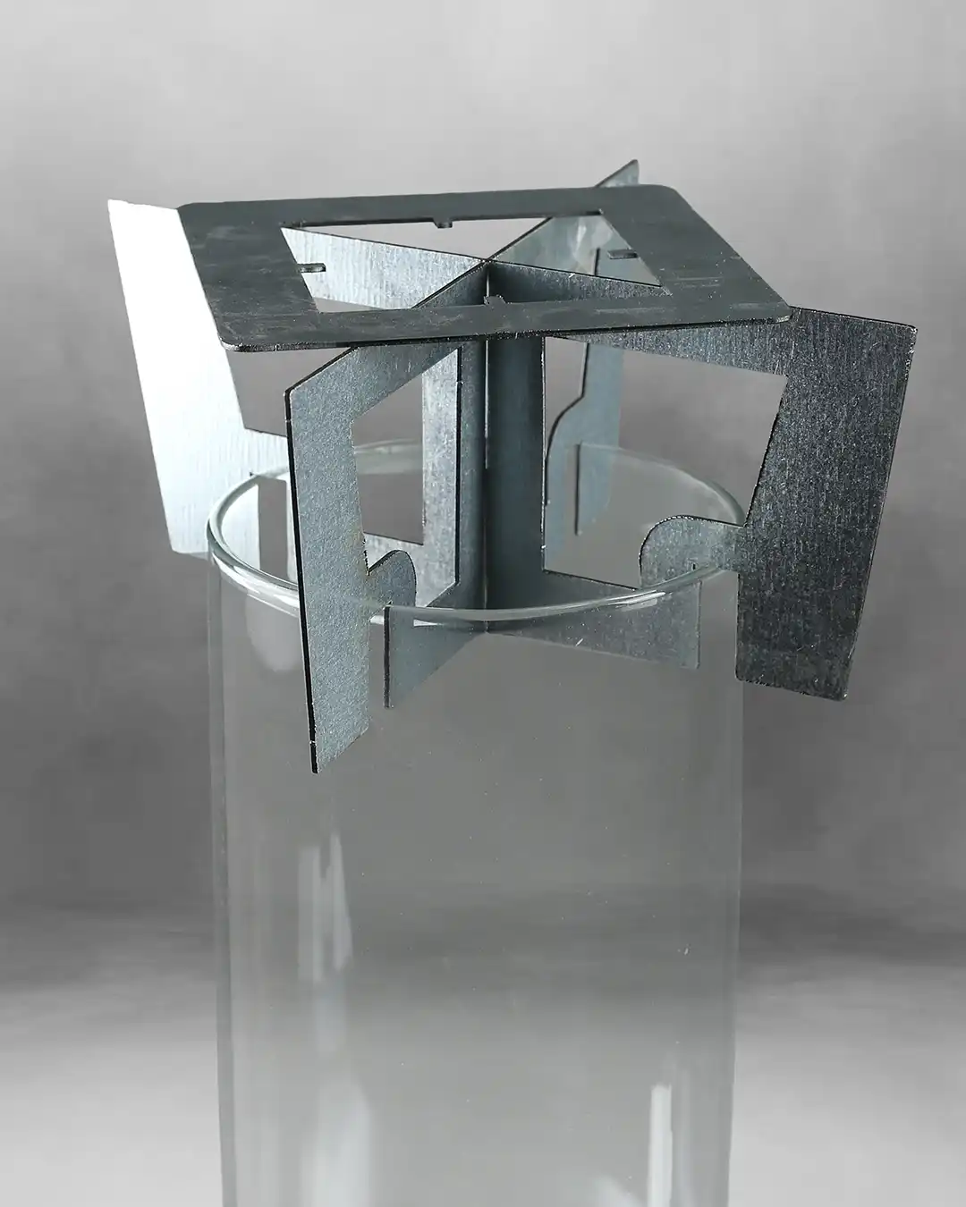 Füze tipi uzun ısıya dayanıklı cam yapısı sayesinde alev görünümü dekoratif atmosfer oluşturur.